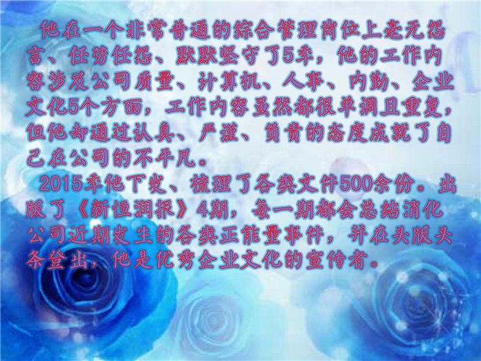 我們將持續依照關心人、尊重人、理解人、信任人的原則,打造恒潤公司的企業文化。
